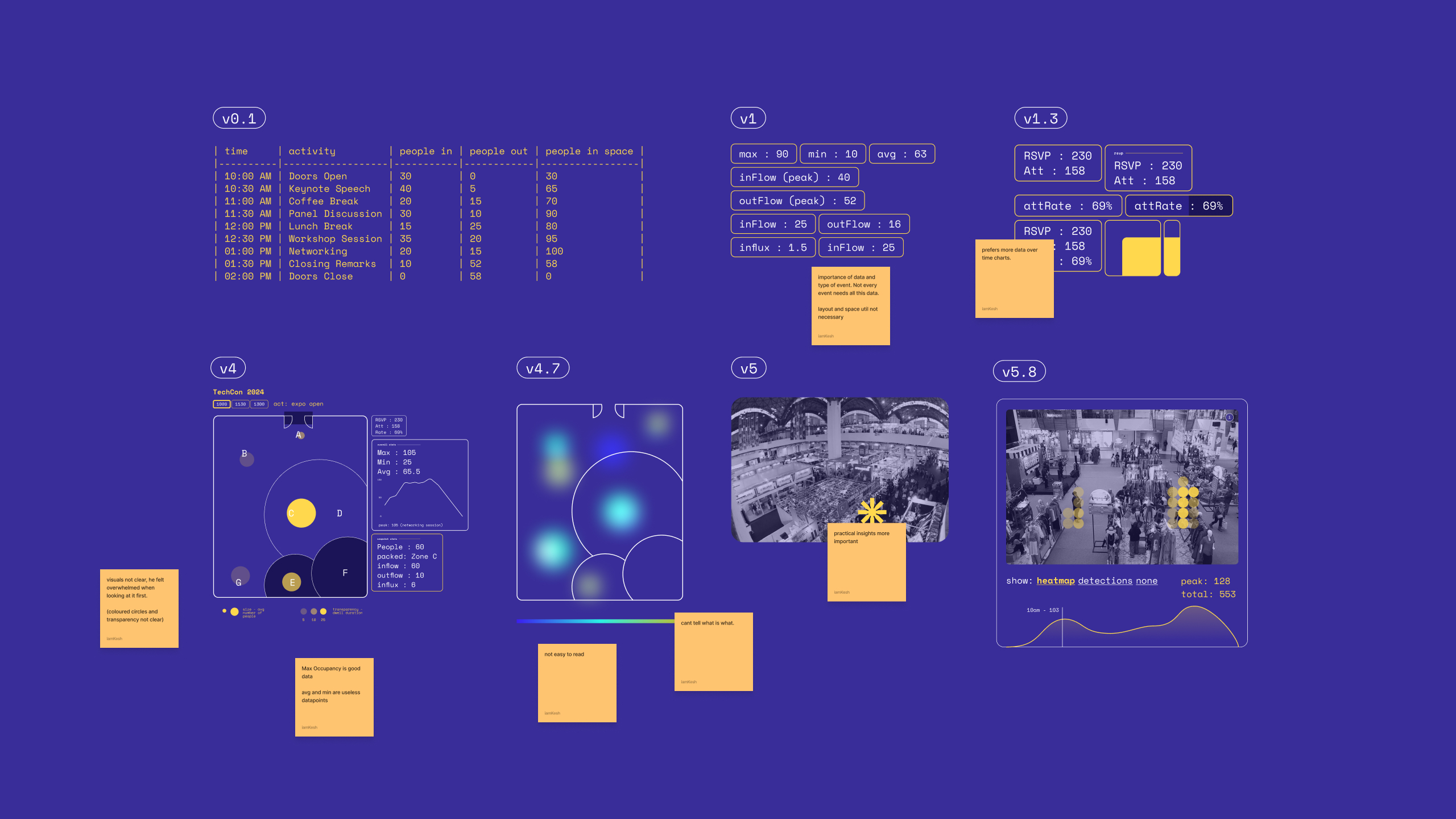 When the initial prototypes were promising, I focused on the data visualization. Early dashboard iterations were then tweaked with event manager’s direct feedback.