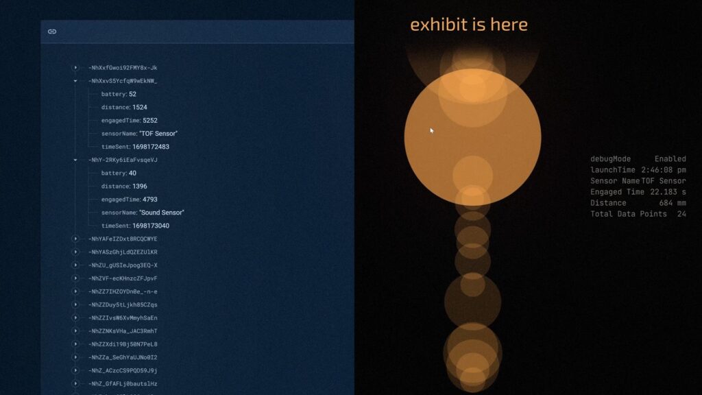 My third implementation was a TOF wireless module. Tiny sensors hidden in art frames that detected presence when someone lingered for a set amount of time in front a space. Linked to a Firebase server, this module transmitted data to a rudimentary dashboard.